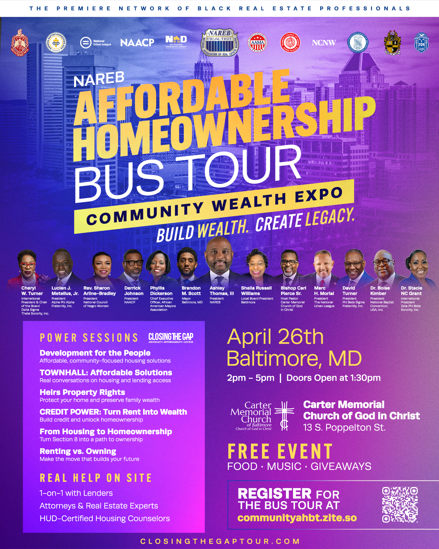 NAREB Affordable Homeownership Bus Tour Community Wealth Expo April 26 @ 2:00 pm - 5:00 pm Carter Memorial Church of Baltimore Church of God In Christ 13 S. Poppleton Street, Baltimore, MD, United States